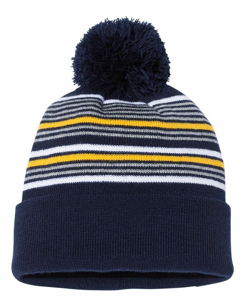 Sportsman 12" Striped Pom-Pom Cuffed Beanie SP60