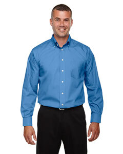 3.4 oz., 55% cotton, 45% polyester Broadcloth; fine yarn count shirting; true Non-iron performance straigt from the dryer; stain release finish; Classic Fit for proffessional appearance; pearlized buttons; patented pucker-free taped seams; specially fused collar, cuffs and placket; split back seam with bias cut back yoke; rolled button-down collar; adjustable "Comfort Collar" for up to an inch of stretch at neck; left-chest pocket;